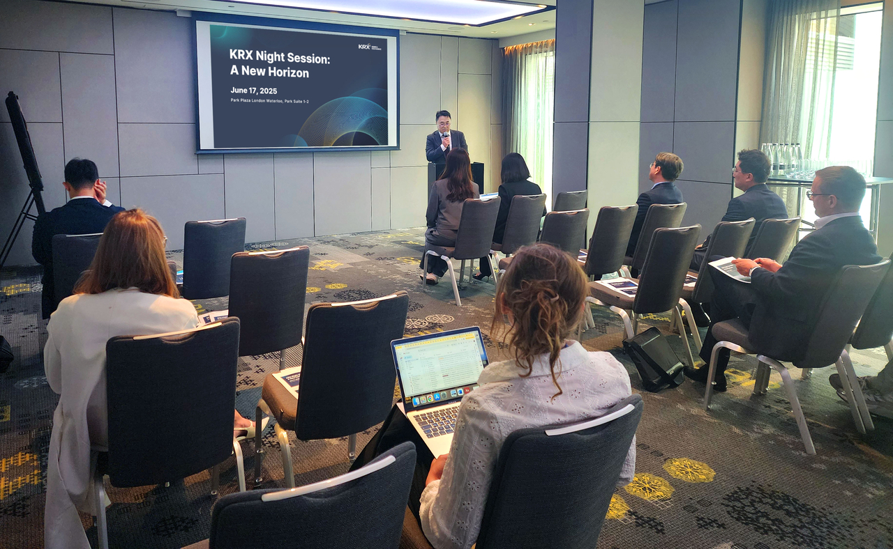 | 한국거래소(KRX) 파생상품시장본부는 지난 17일 영국 런던에서 ‘KRX 파생상품 투자설명회’를 개최하고 현지 주요 기관투자자들을 대상으로 K-파생시장 글로벙 마케팅 활동을 진행했다. [한국거래소 제공] |