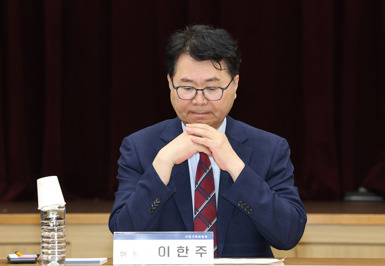 | 국정기획위원회 이한주 위원장이 19일 정부세종컨벤션센터에서 열린 사회1분과의 고용노동부 업무보고에 참석해 있다. [연합] |