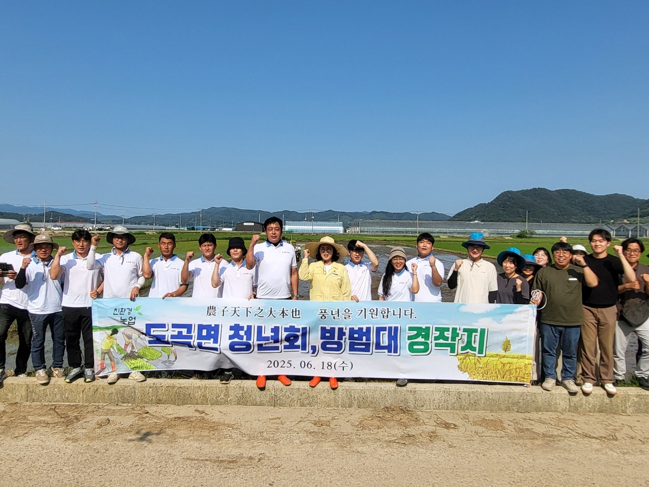 이날 행사는 도곡면 청년회·방범대원, 도곡면행정복지센터 직원 등 30여 명이 참여해 2,342㎡ 면적의 논에서 합동 모내기를 하며 구슬땀을 흘렸다.