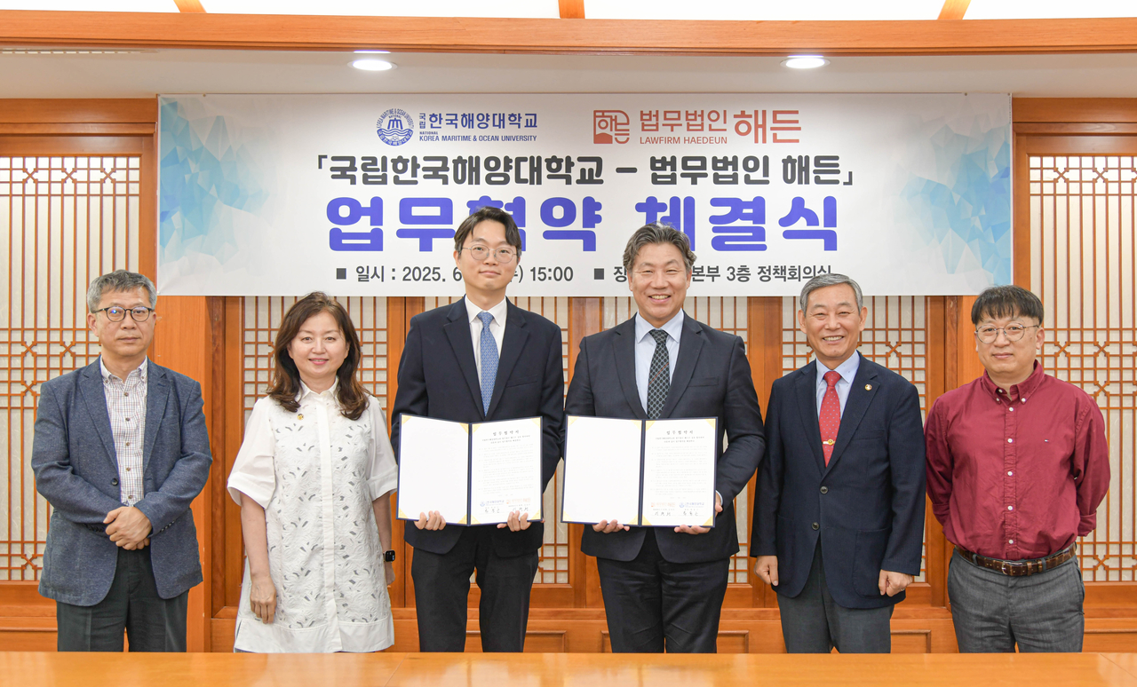 이날 협약식에는 류동근 국립한국해양대 총장과 이재희 법무법인 해든 대표변호사를 비롯해 양 기관 관계자들이 참석했다.