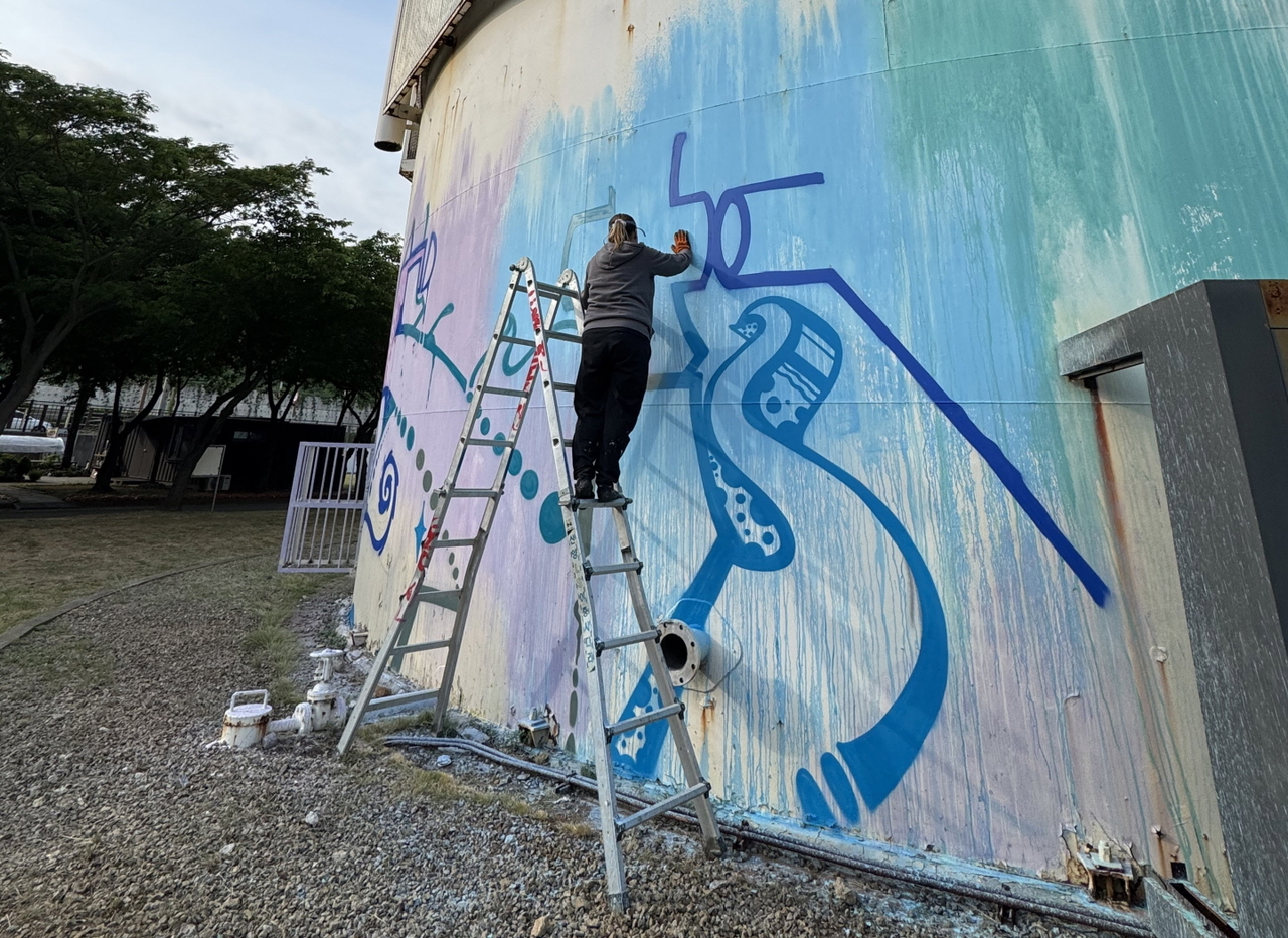 [헤럴드경제=박준환 기자]시흥시 맑은물상상누리의 대형 가스통이 그래피티 작품으로 변신했다. 스페인의 유명 그래피티 작가 2인이 맑은물상상누리의 놀이통 외벽을 캔버스 삼아 개성 가득한 대형 그래피티 작품을 선보인 것이다.