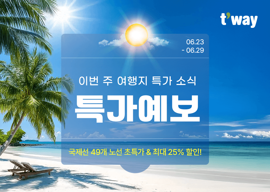 티웨이항공은 홈페이지와 모바일 앱(웹)에서 유럽 대양주 일본 중화권 동남아 중앙아시아 등 49개 해외노선을 대상으로 일주일간 프로모션을 진행한다. 탑승 기간은 일부 노선과 기간을 제외한 6월 23일부터 내년 3월 28일까지다.