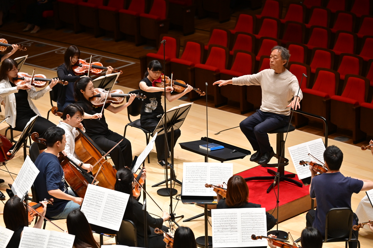| 정명훈 클래식부산 예술감독이 부산콘서트홀 개관 연주를 앞두고 아시아필오케스트라와 리허설을 갖고 있다. [클래식부산 제공] |