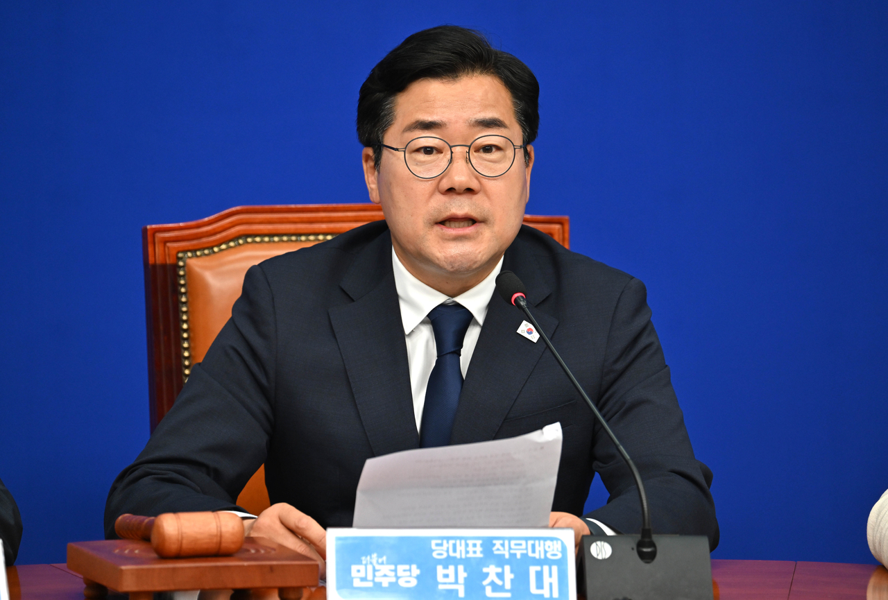 | 박찬대 더불어민주당 당대표 권한대행 겸 원내대표가 지난 9일 오전 서울 여의도 국회에서 열린 최고위원회의에 참석해 발언하고 있다. 임세준 기자 |