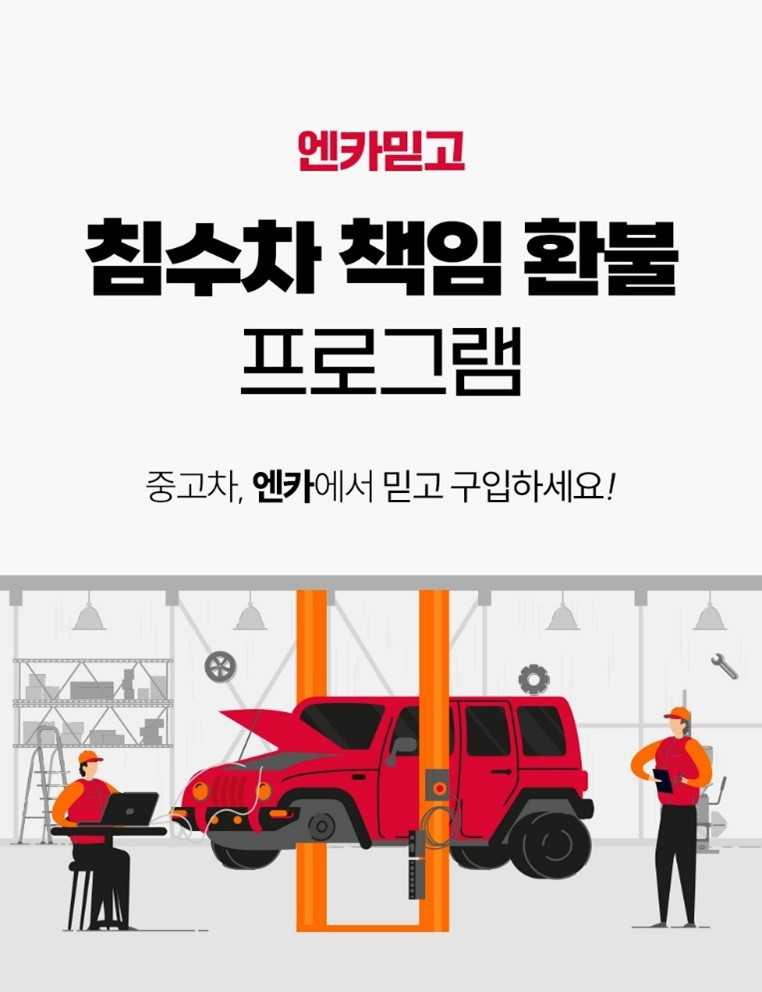 ‘침수차 책임 환불 프로그램’은 엔카믿고로 중고차를 구매한 고객이 차량 인수 후 90일 이내 해당 차량이 침수차로 판정될 경우 이전비와 서비스 이용료, 탁송료를 100% 환불하는 제도다. 해당 절차는 차량 구매 후 90일 이내 구매 당시의 차량 이력과 달리 침수 이력이 있는 차로 확인될 경우 진행된다.