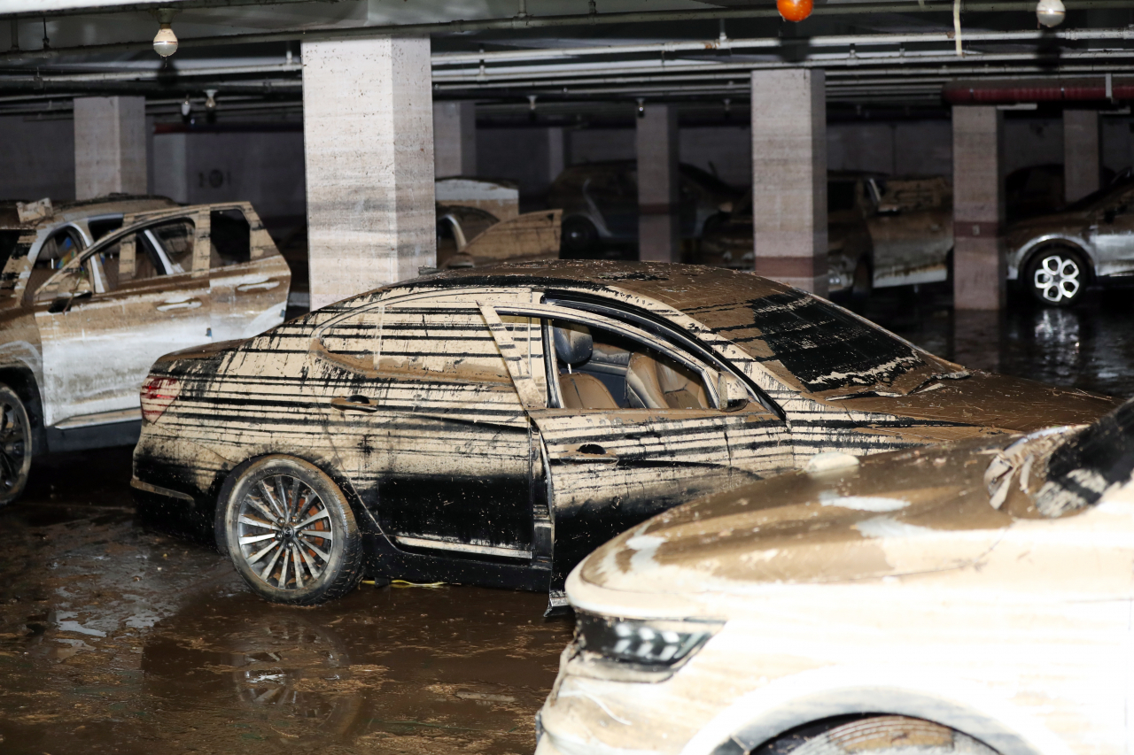 | 지하주차장을 매운 물이 이틀 만에 빠져 진흙이 잔뜩 묻은 차량들 [연합] |