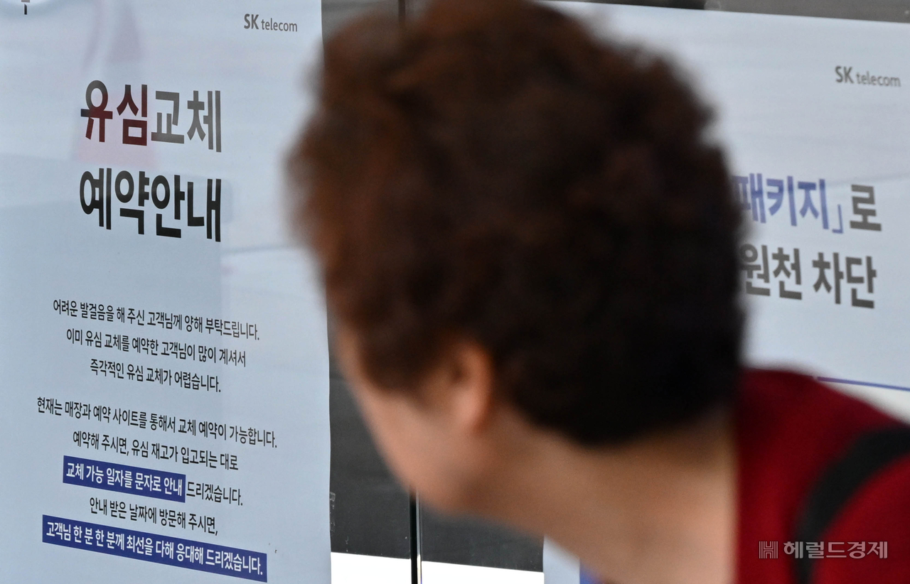 [헤럴드pic] 신규영업 다시 시작하는 SK텔레콤 글꼴 선택 본문 텍스트 크게본문 텍스트 작게 인쇄 [헤럴드경제=임세준 기자] 과학기술정보통신부가 24일 SK텔레콤에 부여한 신규영업 중단 조치를 해제했다. 지난 5월 1일 SK텔레콤에 대해 신규 이동통신 가입자 모집을 중단할 것을 권고하는 내용의 행정지도를 내린 지 약 2개월 만이다. 이날 오전 서울 시내의 SK텔레콤 대리점에 유심 교체 안내문이 송출되고 있다.
