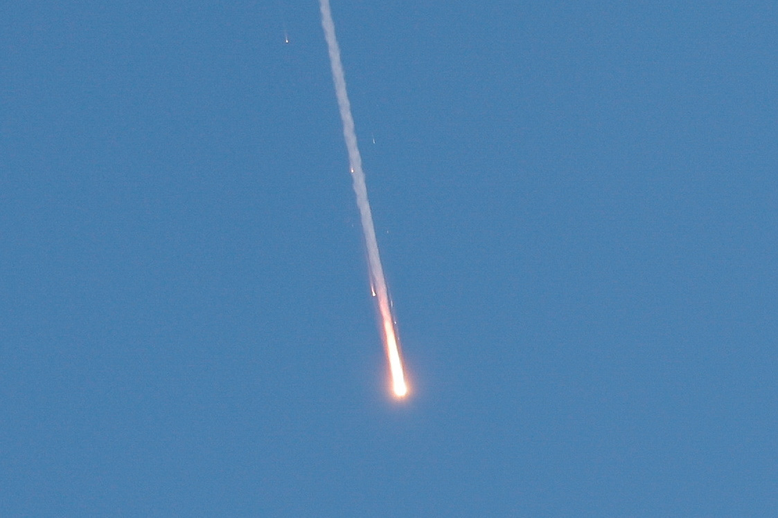 | 이란이 전날 미군의 이란 핵시설 공격을 당한 뒤 24일(현지시간) 이스라엘을 향해 발사한 미사일이 비행하고 있다. [로이터] |