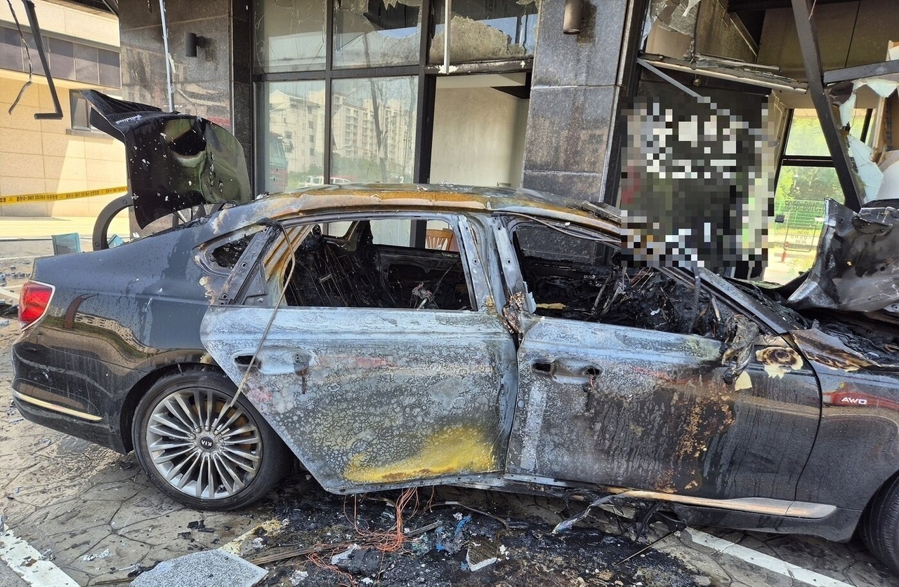 이 사고로 차량에 불이 나 전소됐고, 건물 일부가 파손되는 등 2800만 원의 재산 피해가 발생했다.