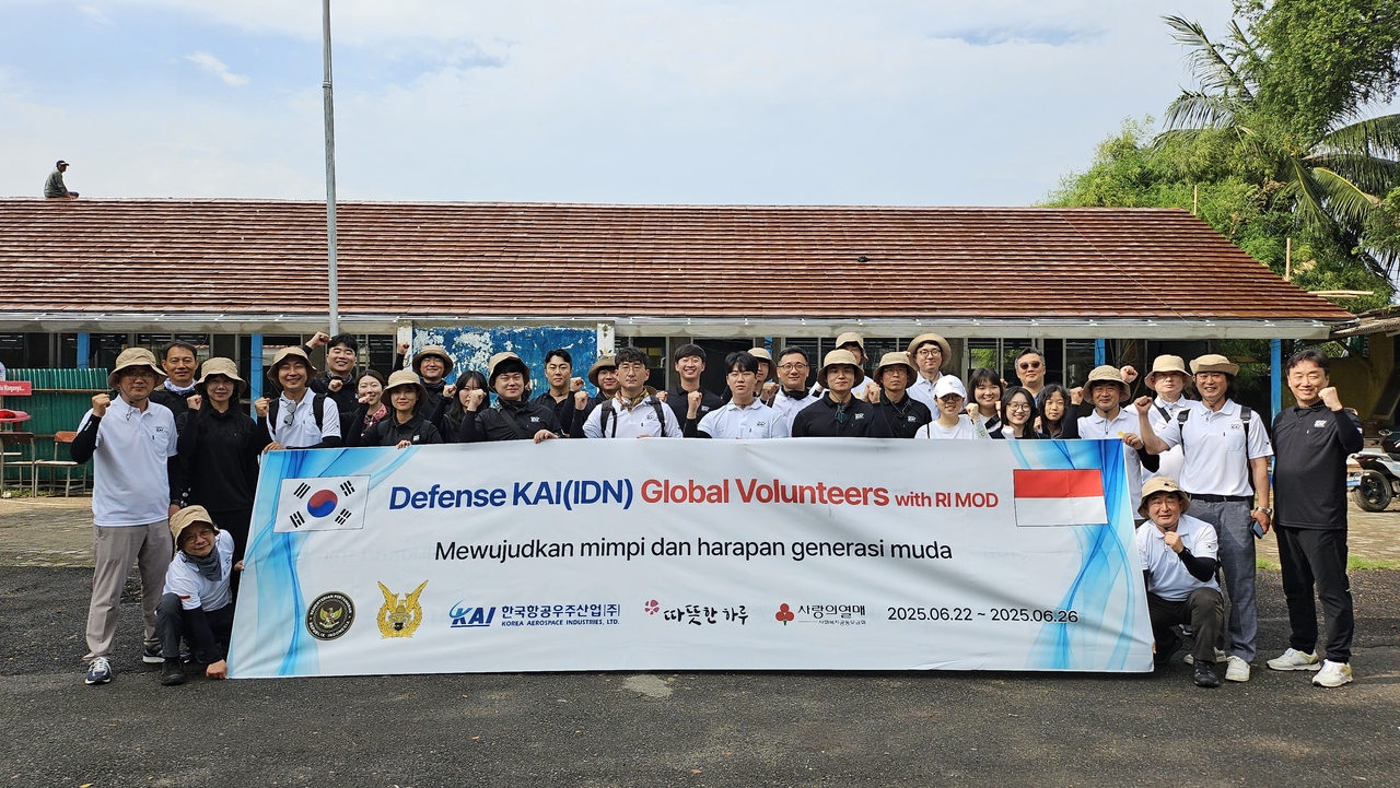 인니는 항공기 최초 수출국, KT-1 20대, T-50 16대 등 항공기 최대 수출국이자 KF-21 사업파트너로, 사회공헌 활동인 ‘디펜스(Defense) KAI’의 대상국에 선정됐다. 이번 봉사활동에는 임직원 27명으로 구성된 나눔봉사단이 참여해, 사흘간 벽화 제작과 책걸상 보수, 정원 정비 작업 등을 진행한다.