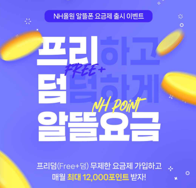 ‘알뜰폰 프리덤(Free+덤) 요금제’는 개통 고객을 대상으로 12개월 동안 매월 NH포인트 적립쿠폰을 제공하는 포인트 구독형 요금제이다. 요금제는 총 3종으로 데이터·음성·문자를 무제한으로 즐길 수 있다. 요금제별로 NH포인트 적립쿠폰이 매월 3000포인트에서 최대 7000포인트까지 차등 제공된다.
