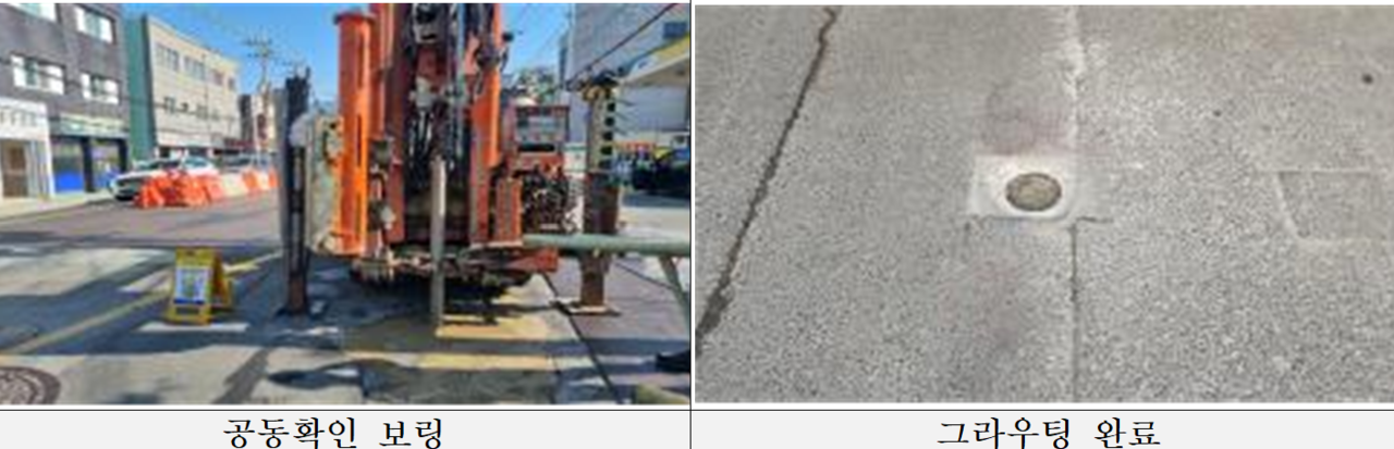 | 시추 작업과 그라우팅 작업 모습. [부산시 제공] |