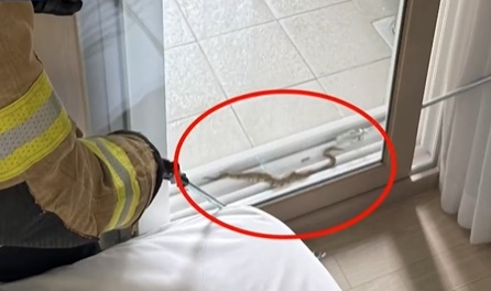 당시 투숙객은 객실에 들어갔다가 방 안에서 몸길이 50cm 뱀을 발견하고 신고했다. 뱀은 창틀 사이에 누워있었던 것으로 전해졌다.
