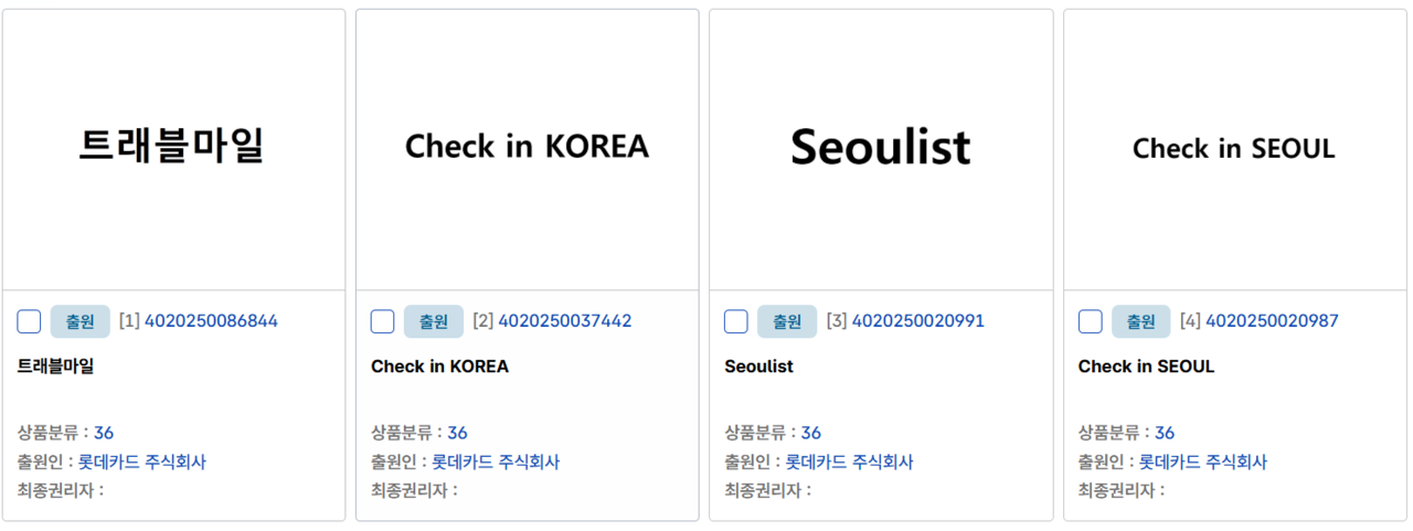| 롯데카드는 올해들어 여행과 관련한 총 4건의 상표권을 출원했다. [키프리스 화면 갈무리] |