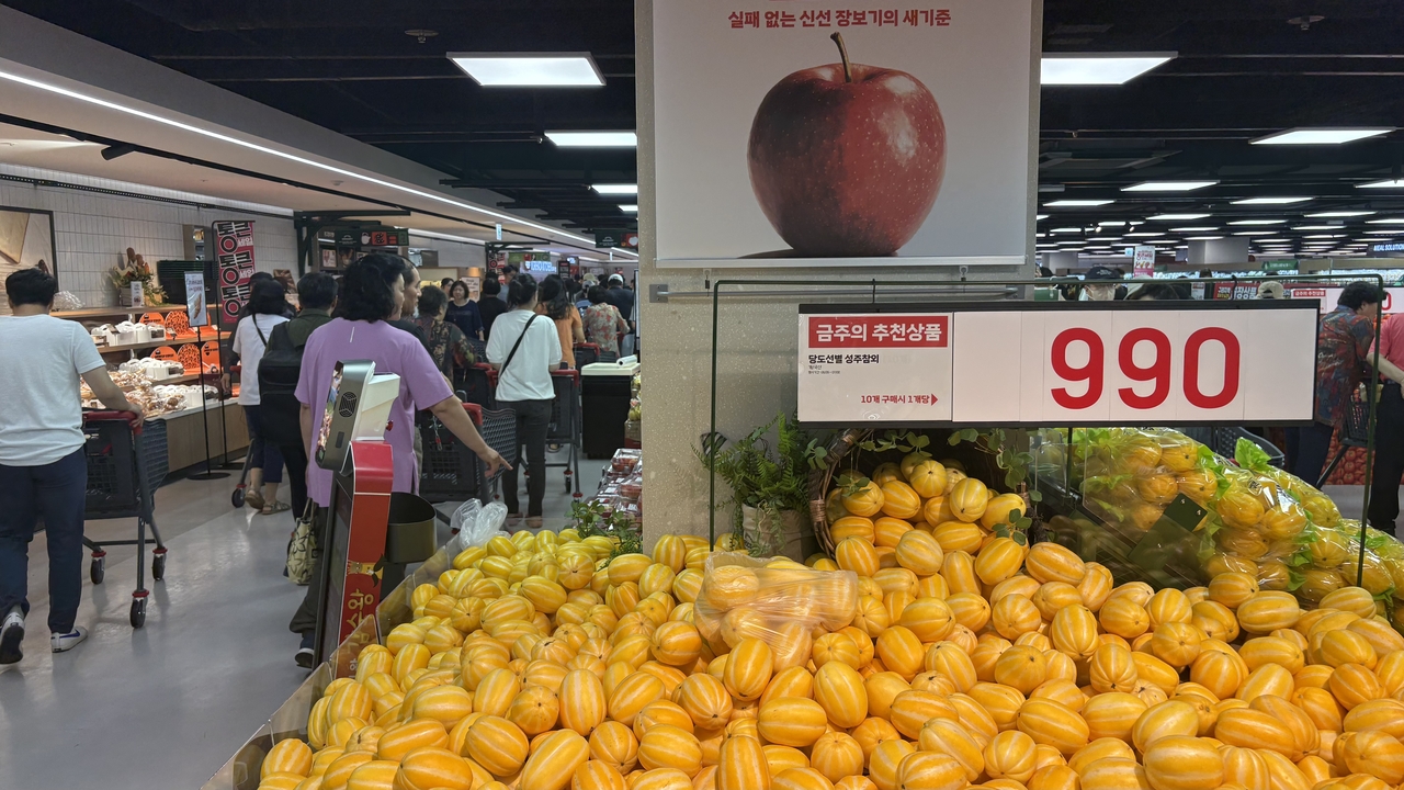 롯데마트 구리점은 물가 안정과 지역 상생을 모두 잡았다. 1층에 들어서자마자 ‘참외 990원’ 문구가 눈에 띄었다. 바로 옆 구리 농수산물 도매시장과 연계해 저렴한 가격에 과일, 채소를 선보일 수 있었다. 대형마트가 전통시장을 해친다는 인식에서 벗어난 일종의 ‘상생 모델’이다. 실제 전통시장과 연계한 ‘구리시 상생 채소’는 일반 상품 대비 30% 이상 저렴했다.