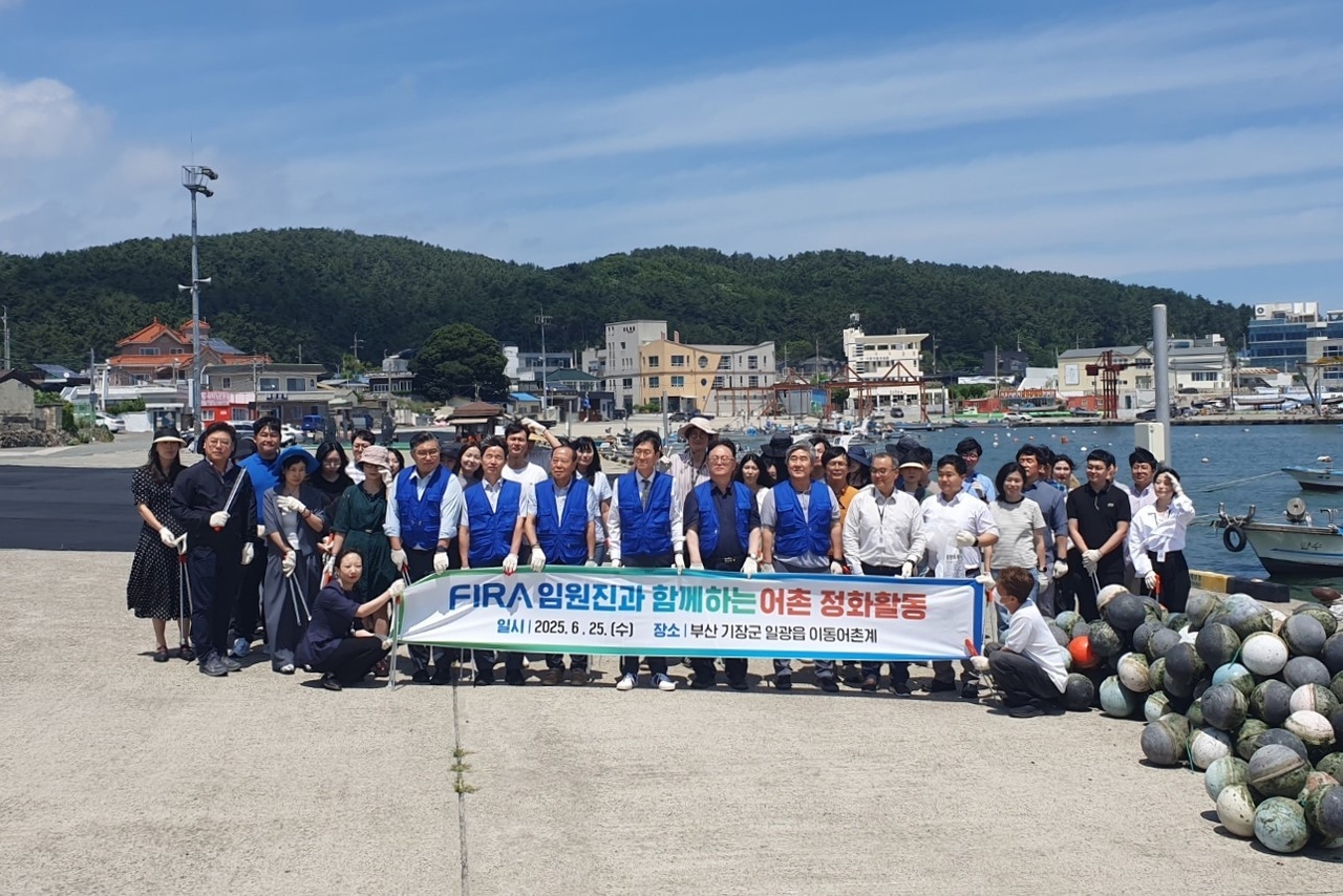 | 지난 25일 한국수산자원공단 임원진 및 본사 직원 50여명은 부산 기장군 일광읍 이동마을 일대에서 어촌정화 활동을 펼쳤다. [한국수산자원공단 제공] |