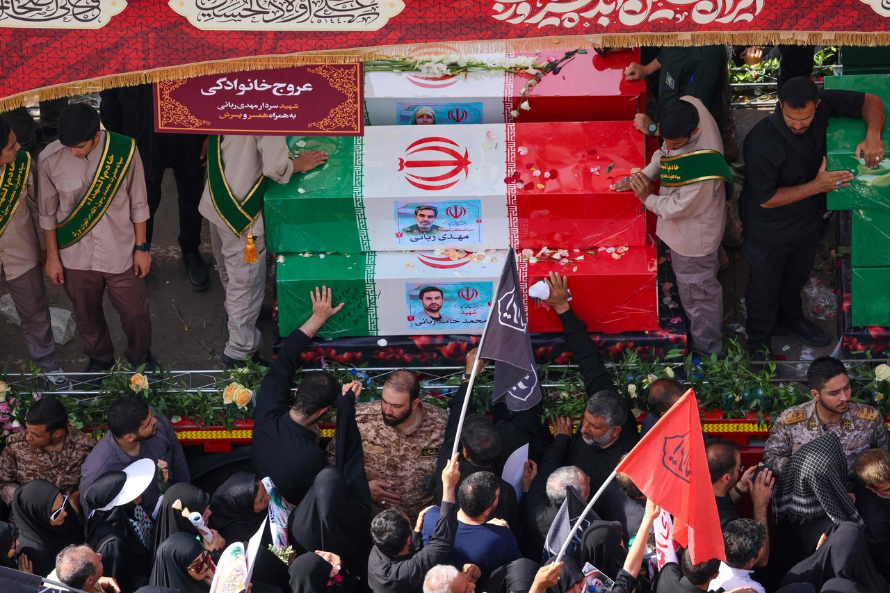 호세인 살라미 이슬람혁명수비대(IRGC) 총사령관, 모하마드 바게리 이란군 참모총장 등 희생된 군 지휘관과 핵 과학자들의 관은 테헤란 혁명 광장에서 열린 장례식 후 아자디 광장으로 향했다.