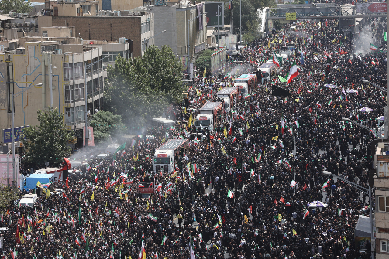 조문객 수천명이 운구 행렬을 뒤따르며 “미국에 죽음을”, “이스라엘에 죽음을”이라는 구호를 외치며 슬픔에 잠겼다. 통곡하며 가슴을 치는 이들도 있었고 일부가 스카프를 던지면 운구 인력이 이를 받아 들고는 축원의 의미로 관을 쓰다듬었다.