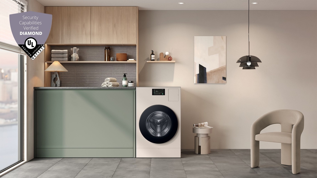 | 삼성전자 ‘비스포크 AI 콤보’ 일체형 세탁건조기 라이프스타일 이미지와 ‘UL 솔루션즈(UL Solutions)’가 주관하는 사물인터넷 보안 평가 ‘다이아몬드’ 등급 이미지 [삼성전자 제공] |