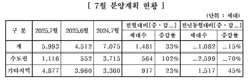| 7월 분양계획. [대한주택건설협회 제공] |