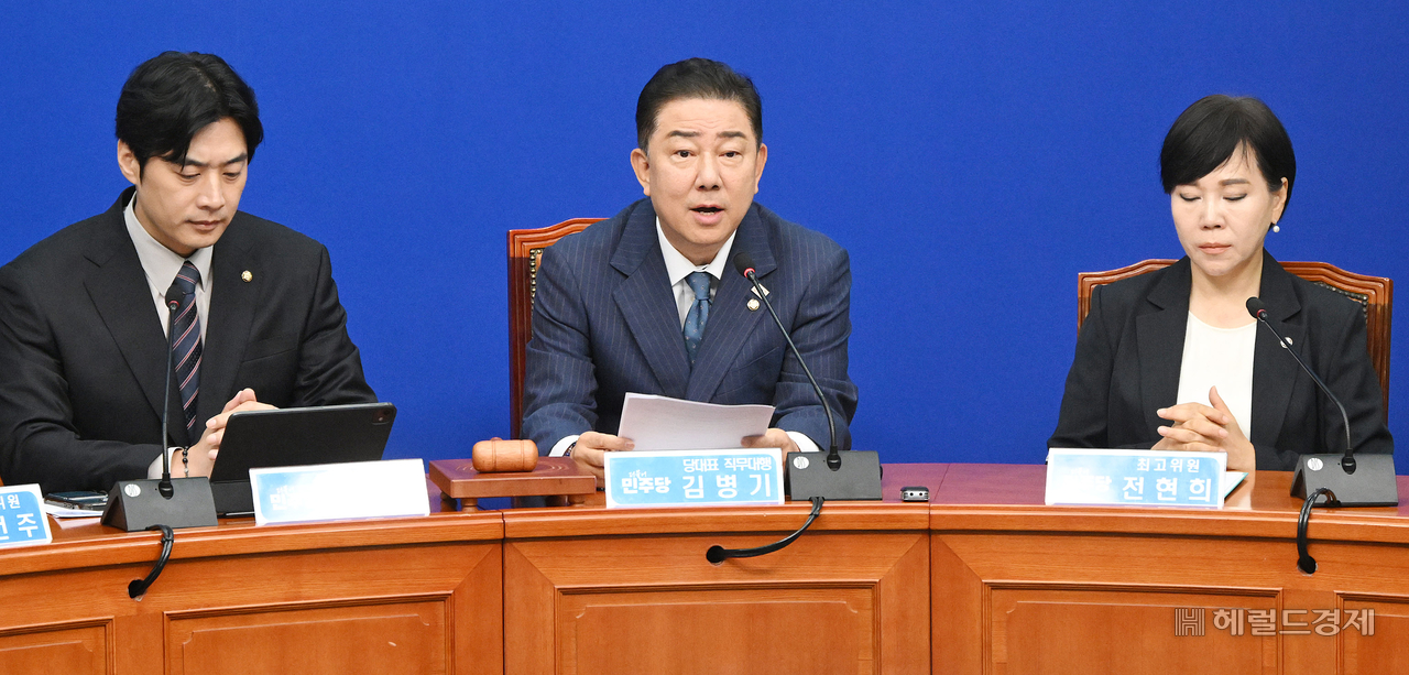 [헤럴드pic] 모두발언하는 김병기 더불어민주당 대표 직무대행 겸 원내대표 글꼴 선택 본문 텍스트 크게본문 텍스트 작게 인쇄 [헤럴드경제=이상섭 기자] 김병기 더불어민주당 대표 직무대행 겸 원내대표가 30일 오전 서울 여의도 국회에서 열린 최고위원회의에 참석해 모두발언하고 있다.