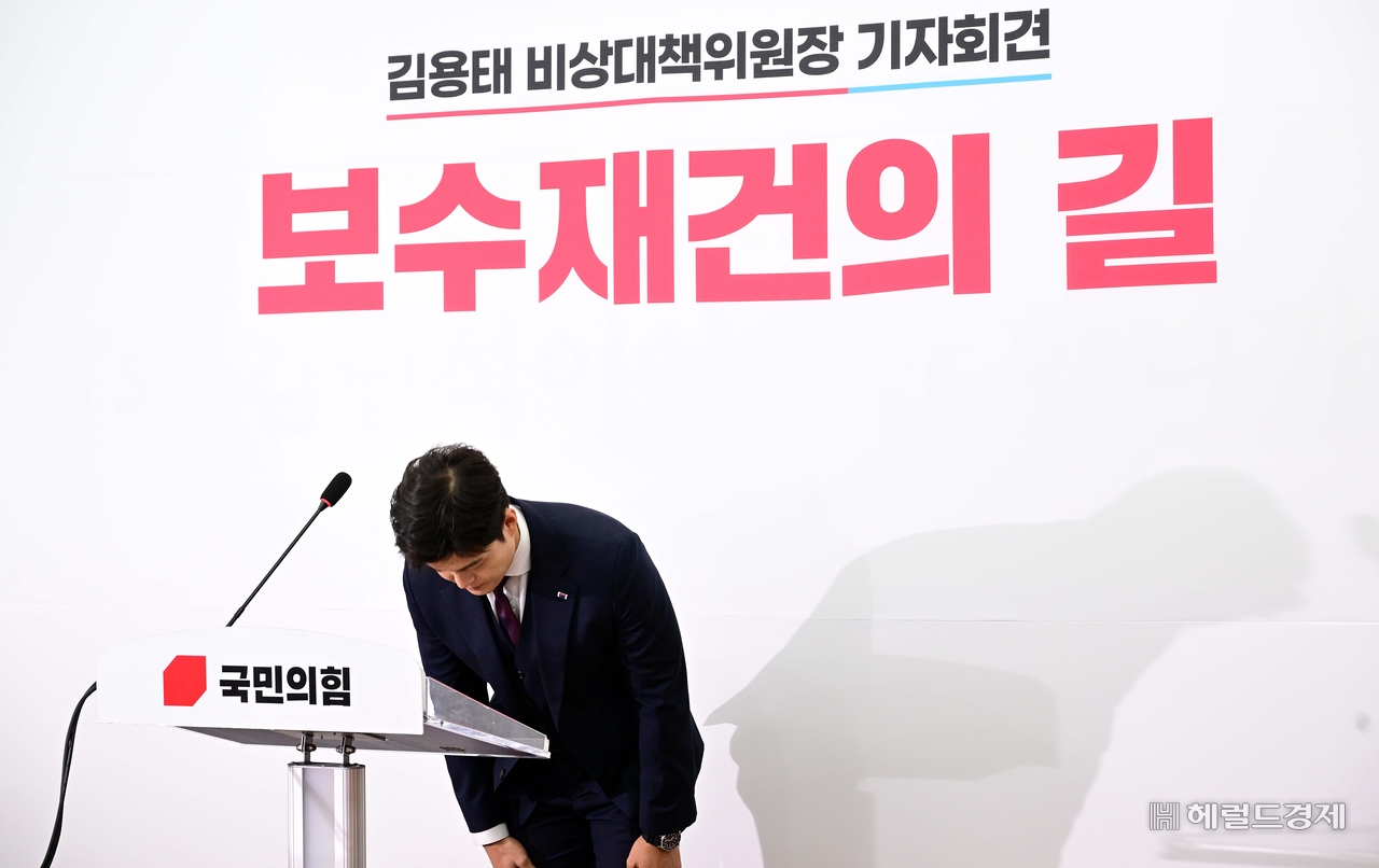 [헤럴드pic] 인사하는 김용태 국민의힘 비대위원장 글꼴 선택 본문 텍스트 크게본문 텍스트 작게 인쇄 [헤럴드경제=이상섭 기자] 김용태 국민의힘 비대위원장이 30일 오전 서울 여의도 국회에서 열린 퇴임기자회견에 참석해 인사하고 있다.