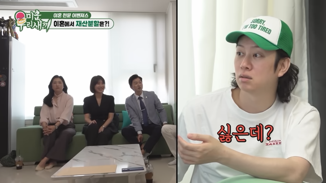 이에 김희철이 “집은 내 돈으로 샀다. 그 집을 나눌 필요는 없는 거지 않냐”고 묻고 변호사들이 “아니다. 나눠줘야 한다”고 답하자, “내 껀데, 내가 미우새랑 슈퍼주니어 하면서 열심히 모아서 산 집인데, 와!”라고 황당해 했다.
