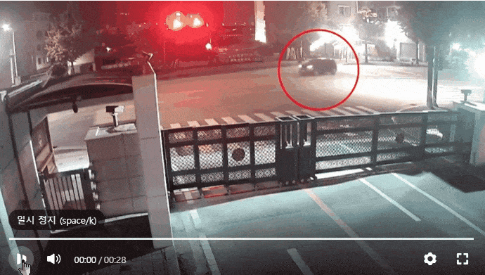 | 지난 5월 14일 오후 10시 57분쯤 춘천경찰서 앞 도로에서 30대 A씨가 몰던 승용차가 불법 유턴을 시도하다 직진하던 택시를 들이받는 모습. [강원경찰청 제공] |