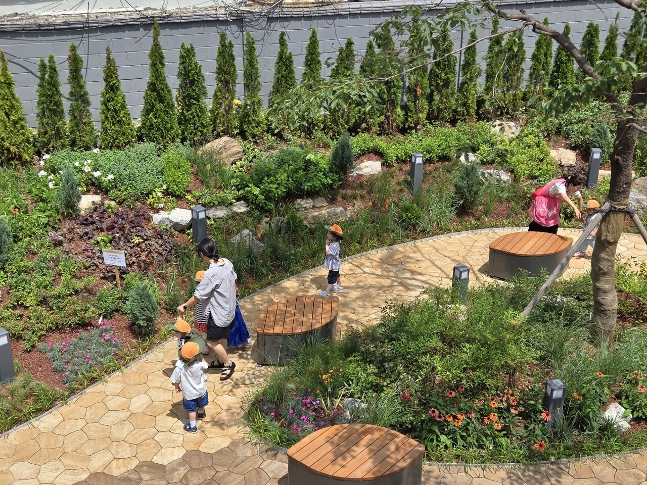 정원은 다양한 식재 디자인으로 주민들에게 시각적 즐거움을 선사한다. 왕벚나무를 비롯한 18종의 수목 1079주와 금계국 등 25종의 초화 2264본이 심어져 계절마다 다채로운 색으로 물드는 정원을 감상할 수 있다. 겨울에는 붉은 말채나무, 봄과 여름엔 양국수와 목수국, 장미가 흰빛과 노란빛으로 정원을 물들이고, 가을이면 선명한 보라빛 네파타 꽃이 감상포인트다.