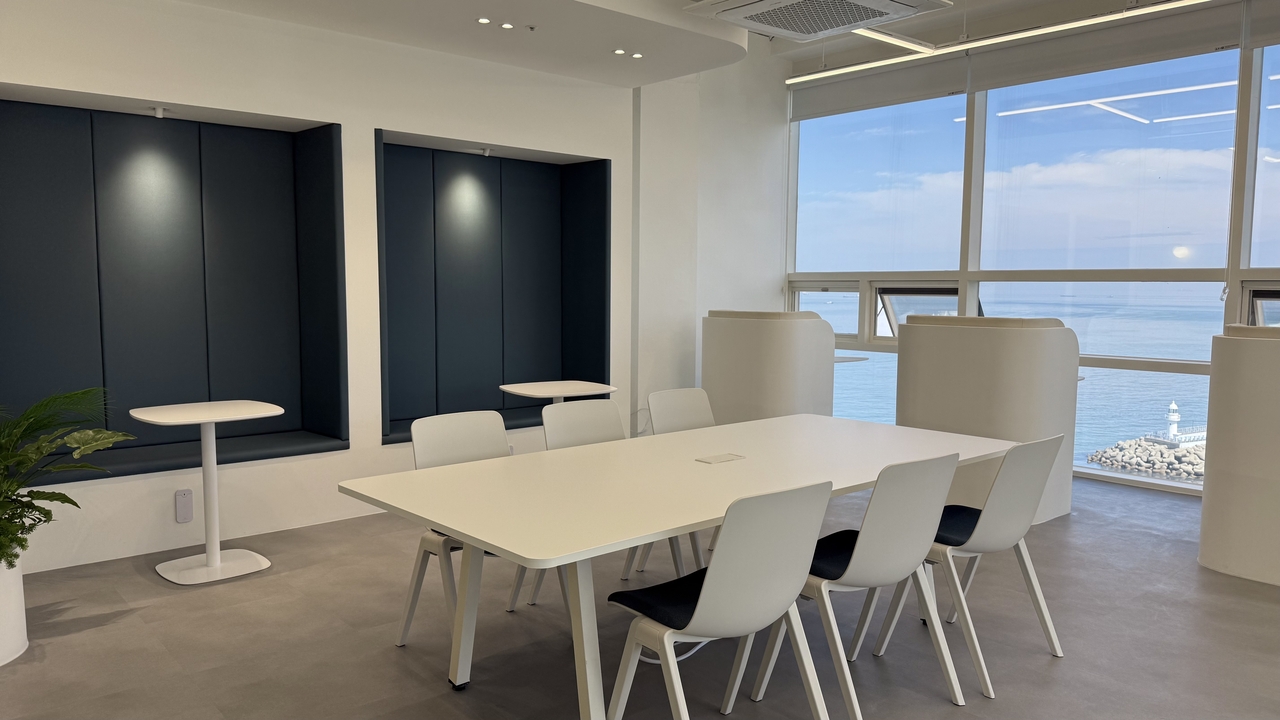 | 국립한국해양대학교 산학협력단은 혁신융합캠퍼스 10층에 워케이션 센터를 개소했다. 사진은 오션뷰를 갖춘 회의실 전경. [국립한국해양대학교 제공] |