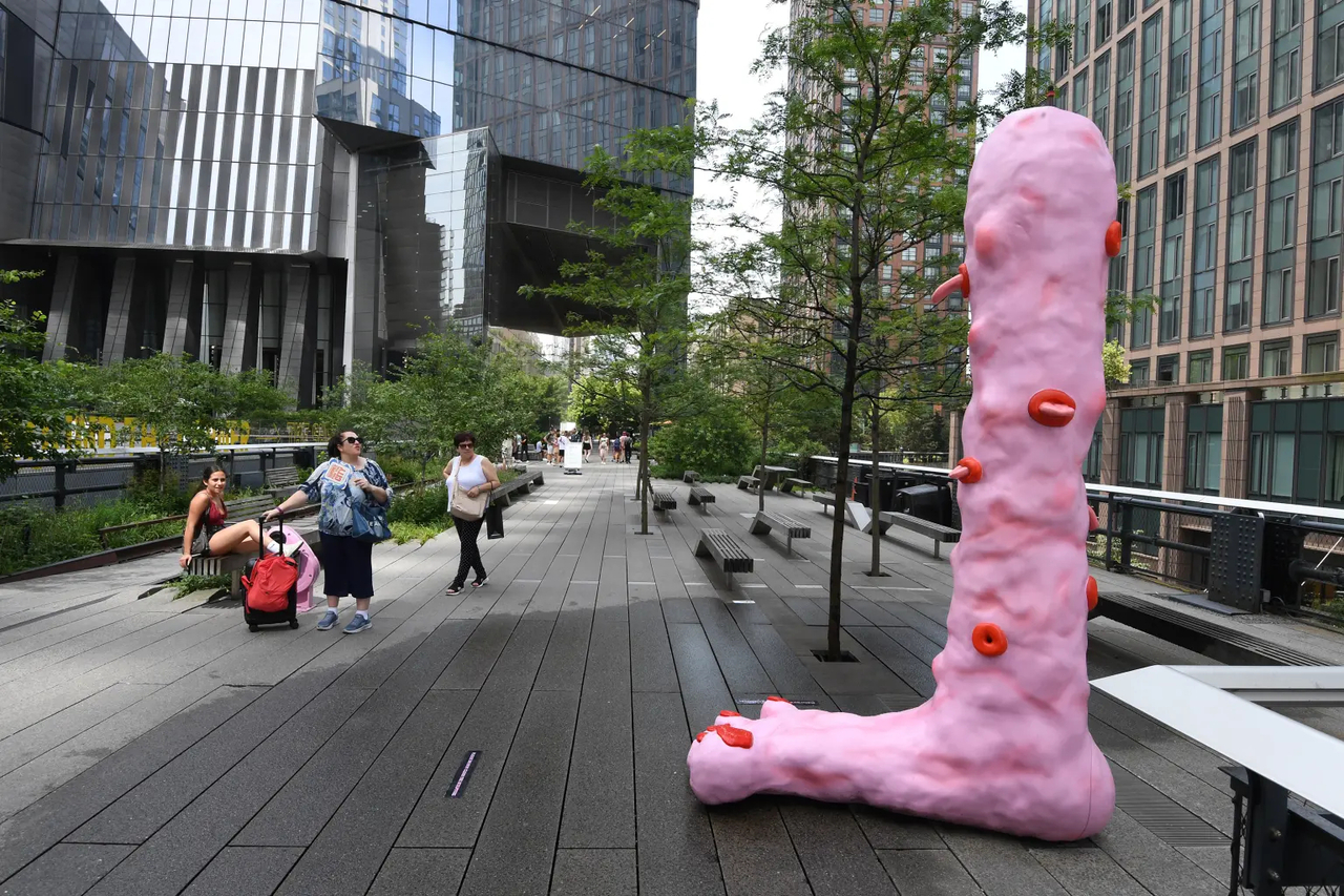 보도에 따르면 W30번가 인근 하이라인에 남근과 발 모양을 한 분홍색 조형물이 새로이 설치돼 방문객들의 분노를 자아내고 있다.