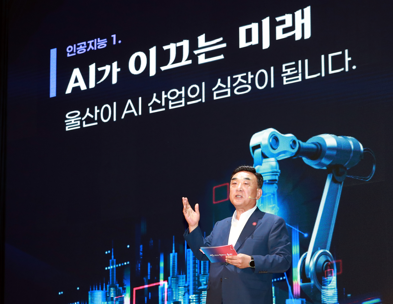 김두겸 울산시장은 민선 8기 출범 3주년을 맞아 지난 1일 울산시청 대강당에서 ‘울산 미래의 문을 여는 뉴비전 선포식’을 열고 “미래 울산은 인공지능(AI)과 에너지, 문화가 융합된 도시로서 산업수도의 위상을 더욱 굳건히 할 것”이라고 천명했다. 지금까지 주력산업이었던 자동차·조선·석유화학을 AI 기반 생산 시스템 최적화 및 제품 고도화와 함께 독자적인 AI산업과 에너지산업 중심으로 유도해 나가겠다는 구상이다.