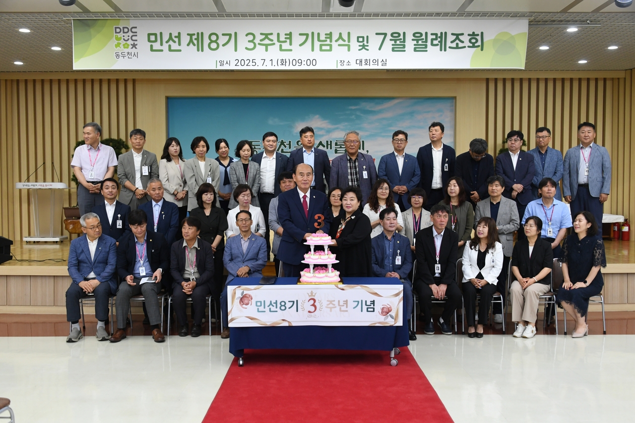 [헤럴드경제=박준환 기자]동두천시(시장 박형덕)가 지난 1일, 시청 대회의실에서 ‘민선 제8기 3주년 기념식 및 7월 직원 월례조회’를 개최했다.