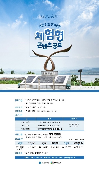 [헤럴드경제(인천)=이홍석 기자]인천관광공사는 관광사업체 및 관련 기관을 대상으로‘2025 인천 평화관광 체험형 콘텐츠 공모’를 20일까지 모집한다.