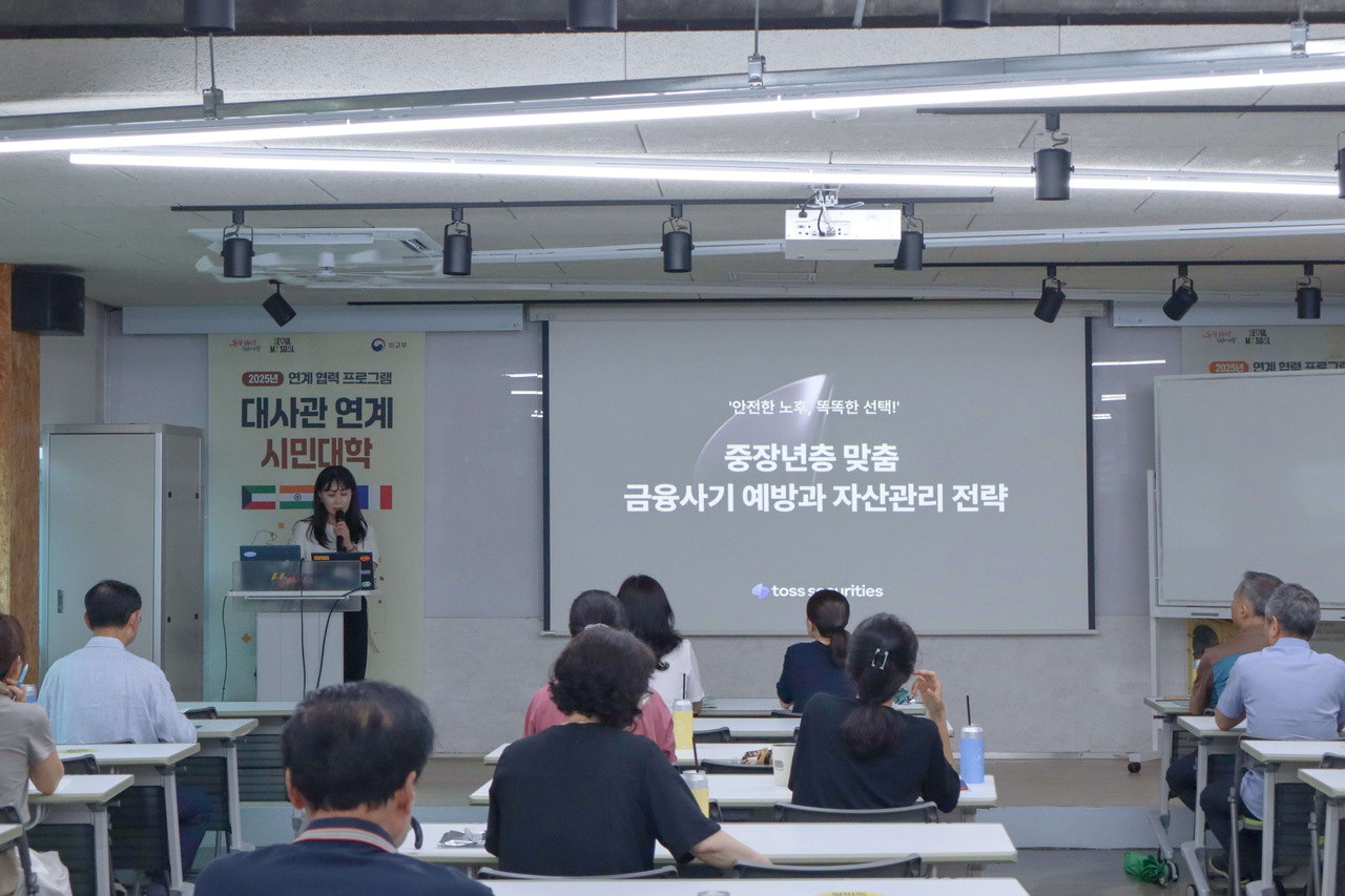 교육은 두 세션으로 나뉘어 진행됐다. 1부에서는 문창엽 토스씨엑스 소비자보호팀 매니저가 고도화되는 금융사기 수법과 피해 사례를 소개한 뒤, 실생활에 적용할 수 있는 예방책과 대응 요령을 설명했다. 2부에서는 이지선 토스증권 리서치센터 애널리스트가 중장년층을 위한 자산관리 전략과 생애주기별 금융투자 방법을 제시했다.