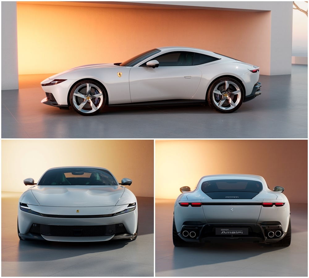 | 페라리 아말피 측면(위쪽부터 시계방향), 후면, 전면 디자인 [페라리 제공] |