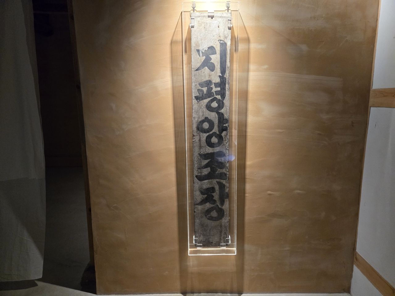 발효실 한쪽에는 ‘지평양조장’ 현판이 걸려 있었다. 해당 현판은 4대째 지평주조를 운영 중인 김기환 대표의 집무실에 있었으나 양조장을 재단장하며 옮겨왔다. 지평양조장 서체는 2019년 지평주조가 제품을 리뉴얼하기 직전까지 사용했다. 이후에는 한정판 제품 패키지에 새겨 인기를 끌기도 했다.