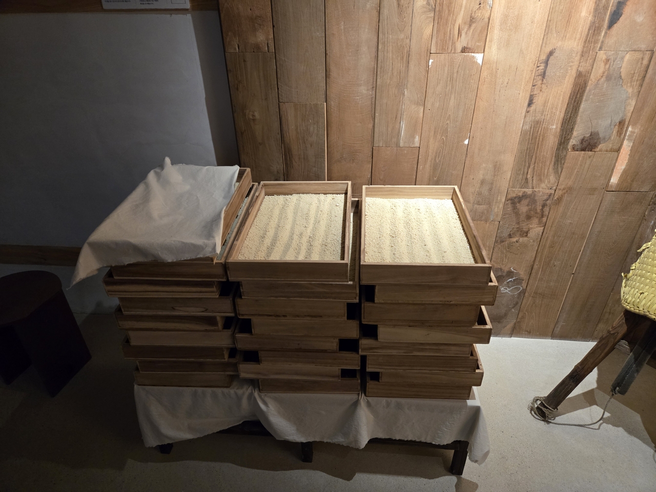 양조장에서는 직접 손으로 막걸리를 빚는 과정을 볼 수 있다. 우선 ‘보쌈실’에서는 밀가루에 파종한 국균(누룩 곰팡이)을 광목 보자기에 싸 온도를 유지하는 모습을 엿볼 수 있다. 보쌈이라는 말은 보자기에 감싼다고 해서 붙인 이름이다. 실제 술로 빚을 수 있는 누룩을 만져보니 흙과 같은 촉감이었다.