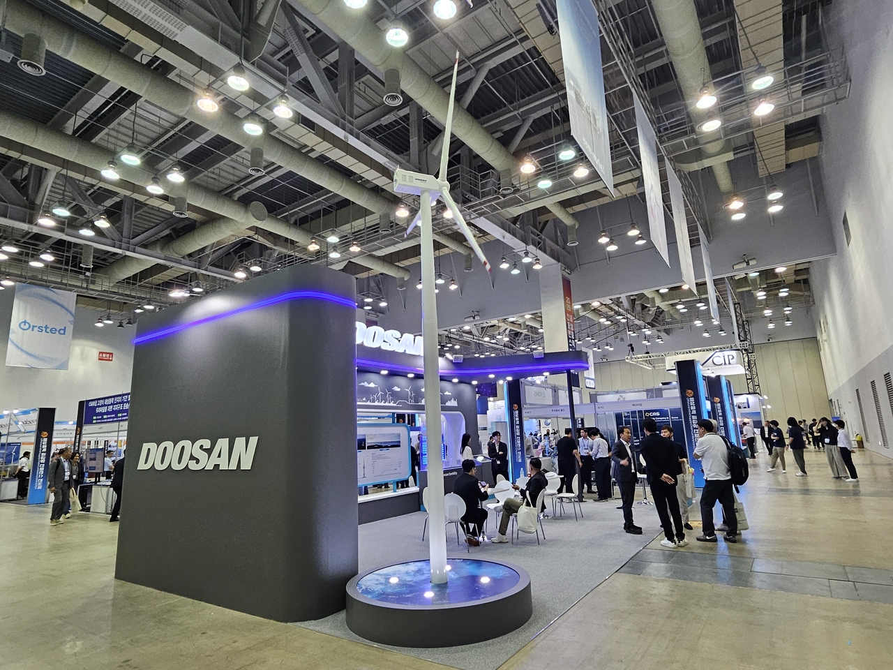 두산에너빌리티는 전시에서 아시아에 최적화한 10㎿ 풍력터빈 등 라인업을 소개했다. 10㎿급 터빈은 이달 중 국제 인증을 취득할 예정이다. 또 풍속이 비교적 느린 환경에서도 효율을 극대화할 수 있도록 만들어졌다. 김자민 두산에너빌리티 풍력프로포절 팀장은 “현재 시장을 점유하고 있는 유럽 모델들은 아시아에서 충분히 발전량을 내지 못한다”며 “올해부터는 해상풍력 입찰에서도 국산 기자재를 적용한 단지에 가점을 주고 있다”고 강조했다.