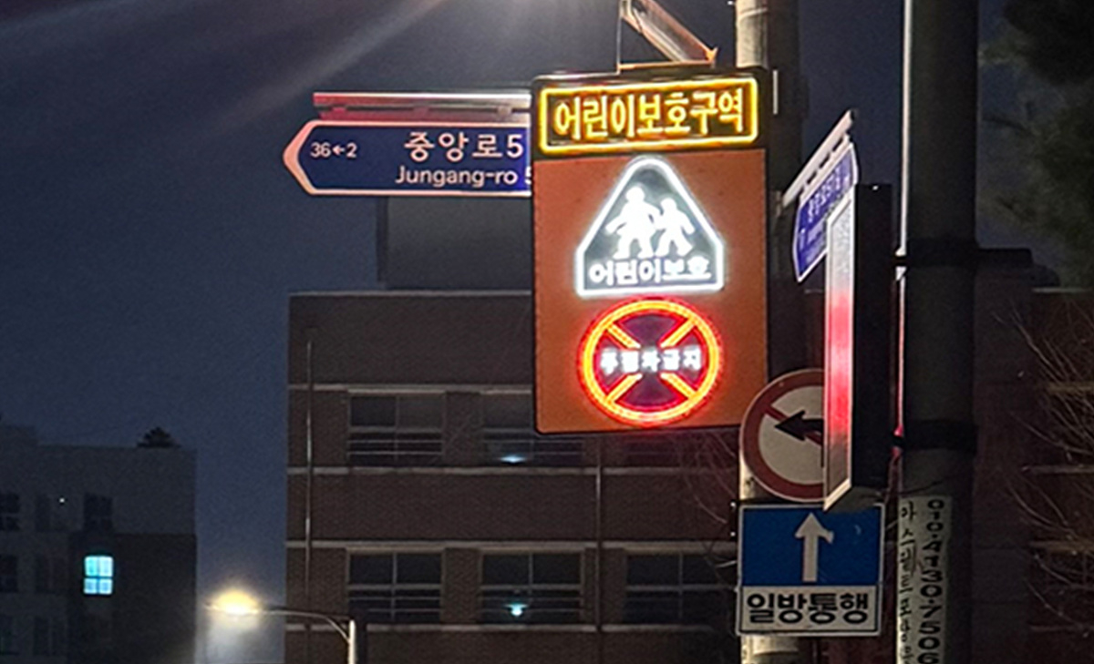 앞서 구는 2023년부터 교통사고 발생위험이 높거나 통행량이 많은 지점을 중심으로 교통안전표지 교체사업을 추진, 지난해까지 ▲어린이보호구역 시·종점 안전표지 ▲어린이보호구역 통합안전표지 ▲횡단보도표지 ▲과속방지턱표지 등 총 368개 표지를 LED 발광형으로 교체한 바 있다.