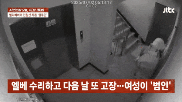 지난 4월에는 건물 엘리베이터가 갑자기 고장 났는데 관리인이 확인해 보니 배전함 내부 전선이 인위적으로 절단된 정황이 발견됐다. 결국 입주민들은 수리비 500만원을 자비로 부담해 엘리베이터를 고치고 추가 훼손을 막기 위해 배전함 앞에 CCTV도 설치했다.