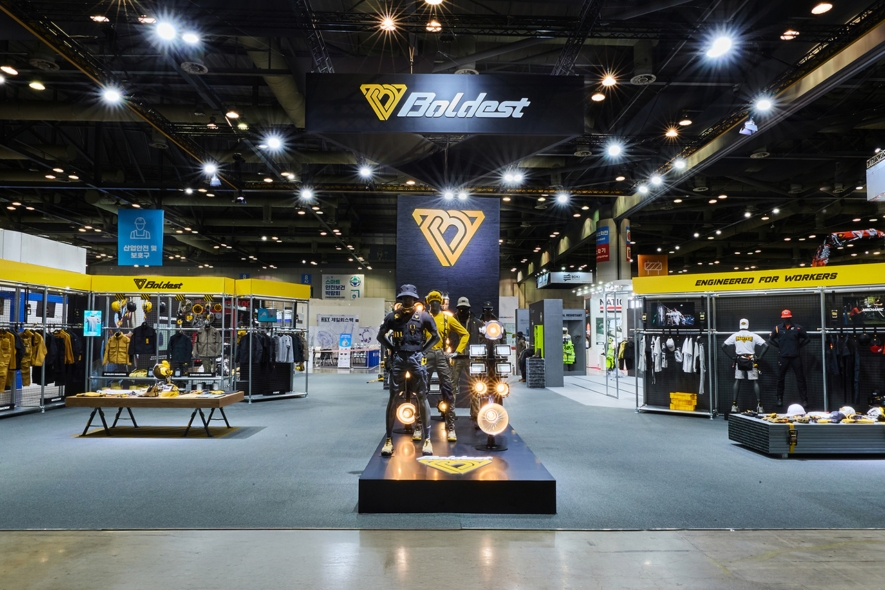 이날 볼디스트는 박람회에서 고기능성 워크웨어 및 고안전성 개인보호구를 전시했다. 전시의 시작점인 ‘브랜드 존’에서는 50년 이상 축적된 코오롱의 섬유 소재 기술력을 바탕으로 자체 개발한 아라미드 섬유 헤라크론과 베임 방지 및 냉감 기능성 소재 포르페를 적용한 제품을 볼 수 있다. 실제 산업 현장의 작업 특성과 직군별 니즈를 반영한 네 가지 특화 라인업도 선보였다.