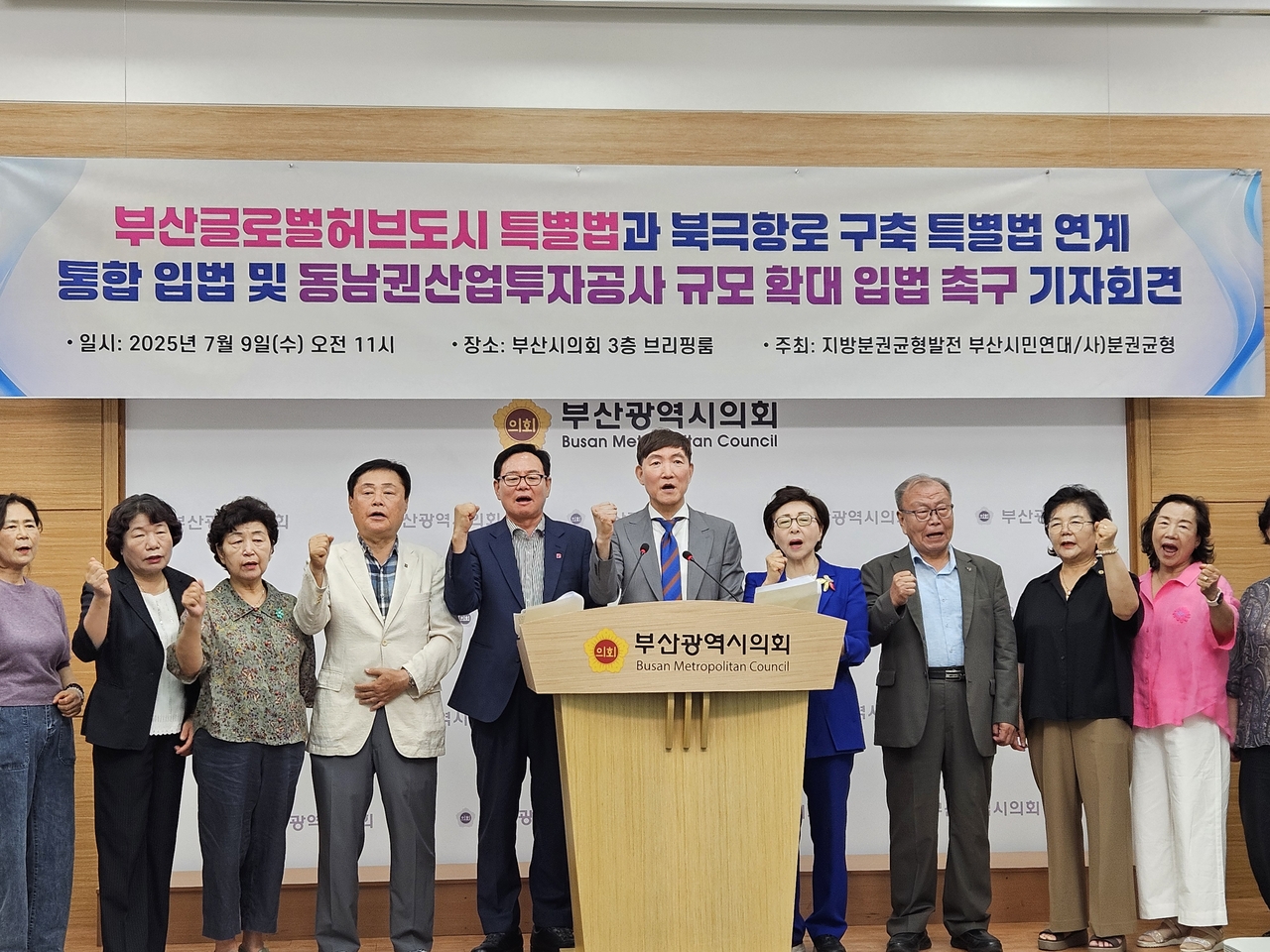 지방분권균형발전부산시민연대는 9일 부산시의회에서 기자회견을 열고 “이재명 정부의 핵심 과제인 북극항로 구축에 능동적으로 대처하기 위해서는 지향점이 같은 두 법안을 연계해 단일 법안으로 통합하는 방안을 적극 추진해야 한다”고 말했다.