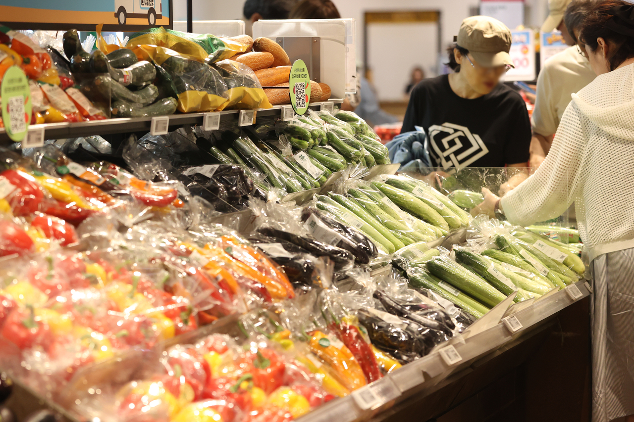 | 서울의 한 대형마트를 찾은 시민이 채소 판매대에서 물건을 살펴보고 있다. [연합] |