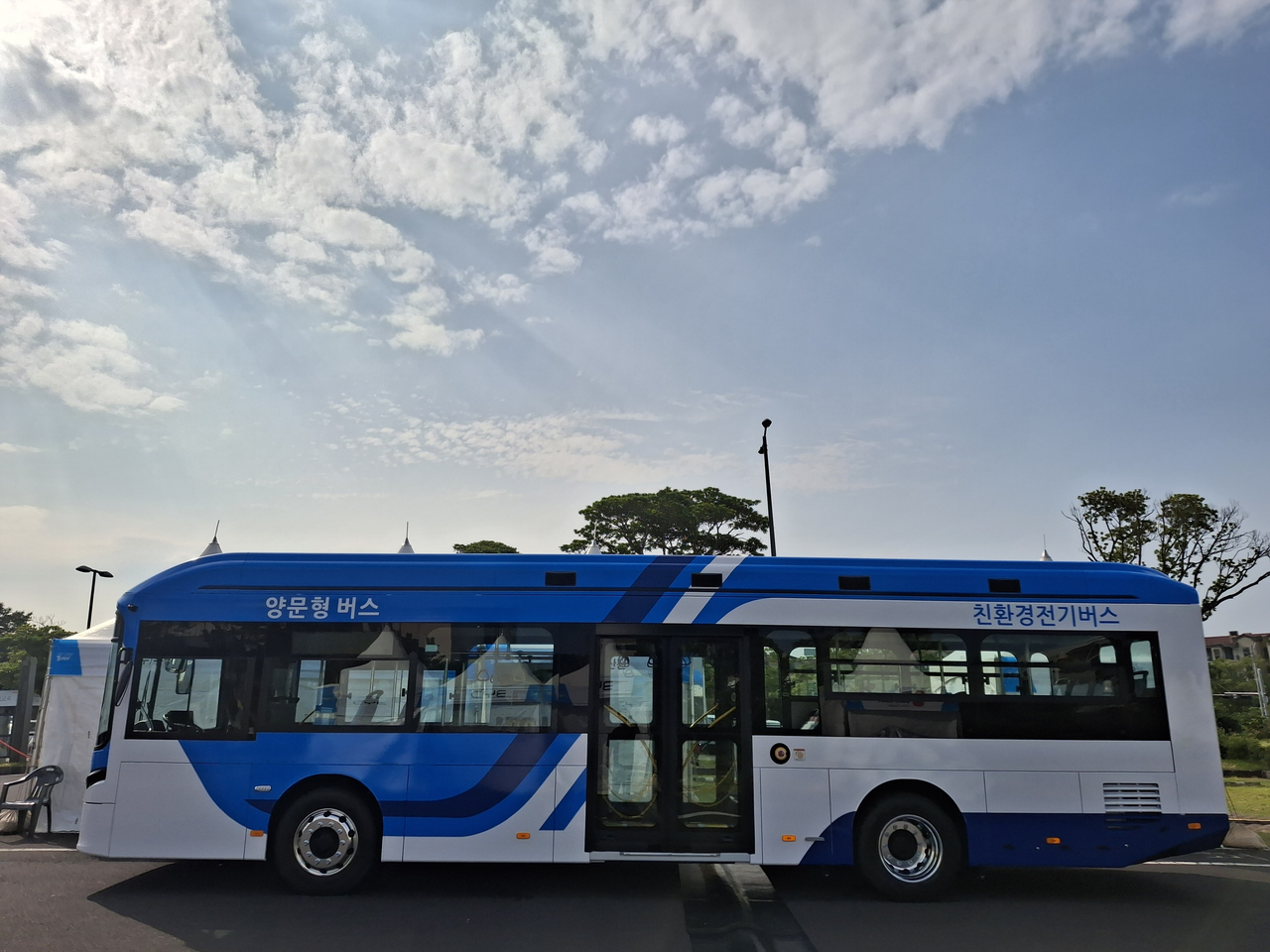 | 우진산전이 현장에 전시한 아폴로 1100버스 [서귀포=김성우 기자] |