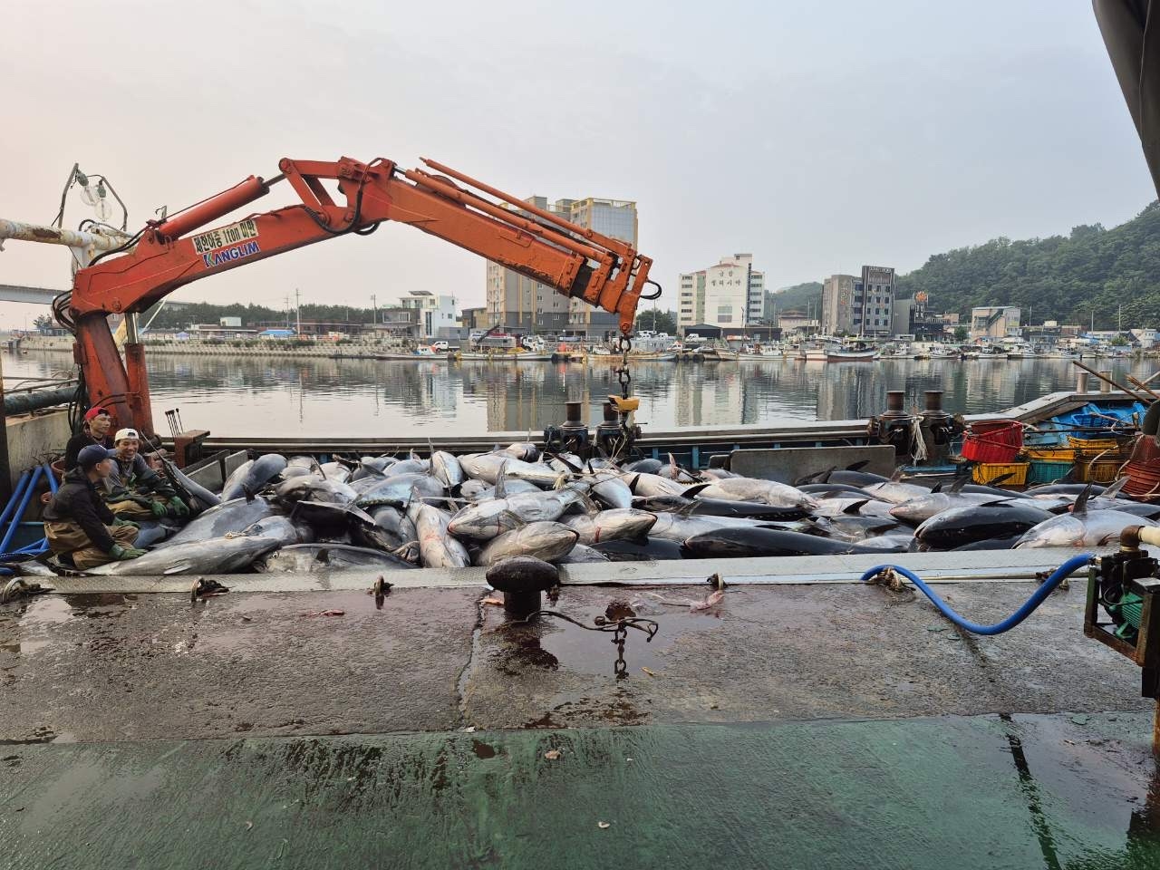 [헤럴드경제(영덕)=김병진 기자]경북 영덕 앞바다에서 대형 참다랑어가 무더기로 잡혔다.