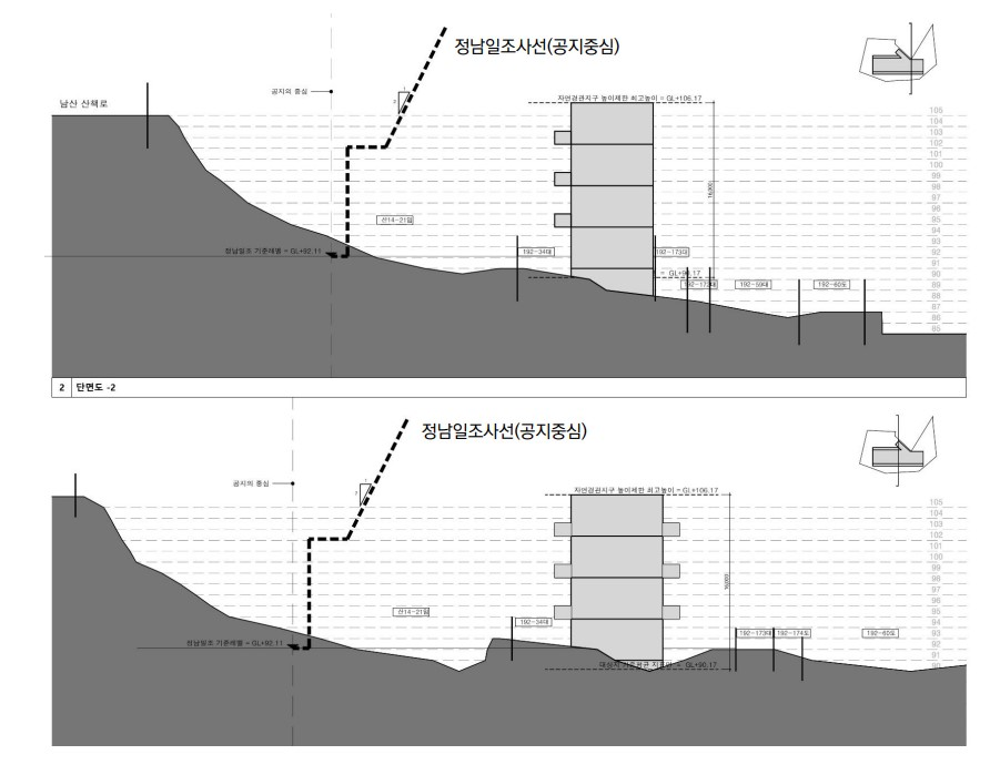 문제는 지형이었다. 남산을 끼고 있는 중구는 ‘남고북저(南高北低)’, 즉 남쪽이 높고 북쪽이 낮은 지역이 많다. 기존 일조권 규정은 북쪽 대지와의 고저차 2분의 1지점부터 높이 기준을 산정하기 때문에, 북쪽 대지가 낮으면 층수 확보에 불리할 수밖에 없었다.