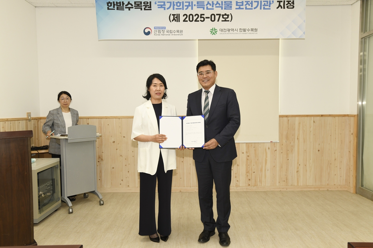 [헤럴드경제= 이권형기자] 대전시 한밭수목원이 국립수목원으로부터 ‘국가희귀·특산식물 보전기관(제2025-07호)’으로 공식 지정받아 기후변화 대응 및 생물다양성 보전에 본격 나선다.