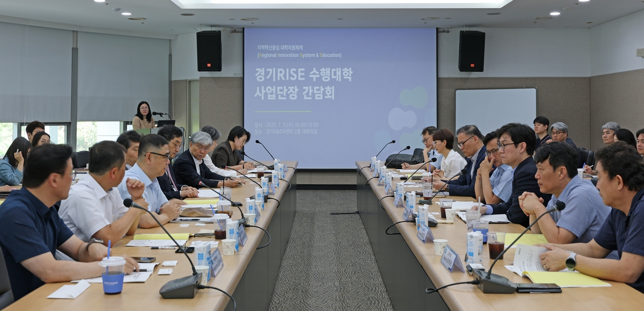 [헤럴드경제(수원)=박정규 기자]경기도와 경기도경제과학진흥원은 9일 경기R&DB센터에서 도내 50개 라이즈(RISE) 수행대학과 첫 공식 간담회를 열고 지역과 대학의 상생 협력을 위한 본격적인 행보에 나섰다.