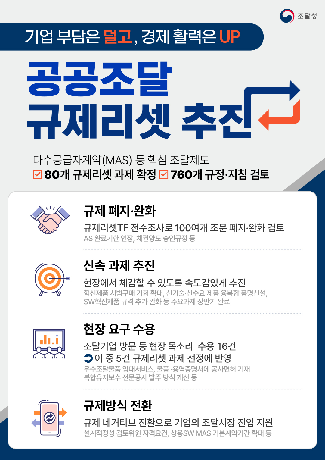 | 공공조달 규제리셋 추진 인포그래픽. |
